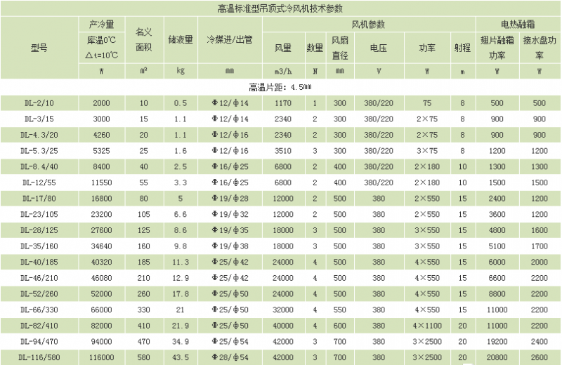 冷风机是一种配套于氟利昂制冷机组使用的库内冷却降温设备,按适用温度来分,分为DL、DD、DJ、三种系列,可分别适用于不同的库温,DL型冷风机主要适用于0℃左右的保鲜库;DD型冷风机主要适用于-18℃的冷藏库,DJ型冷风机主要适用于-25℃以下的速冻库 。